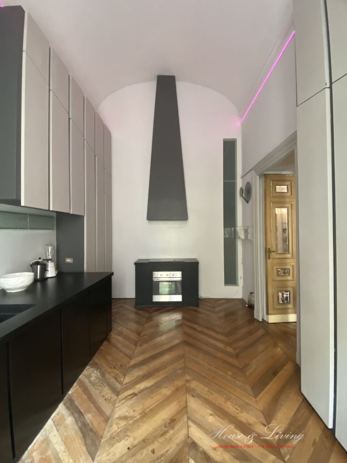 Discover a unique living experience in the heart of the city with this splendid apartment located in a prestigious period building. The expert renovation has highlighted the designer finishes, creating an elegant and welcoming atmosphere. The large, modular entrance hall serves as a reception room for guests, while the hallway leads to an extraordinary reception room, featuring vaulted ceilings and relief decorations that reflect the building's history.