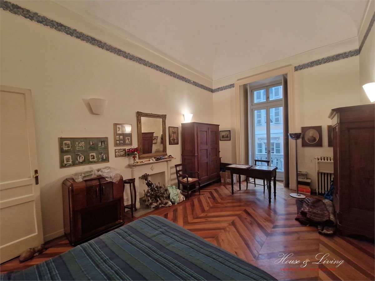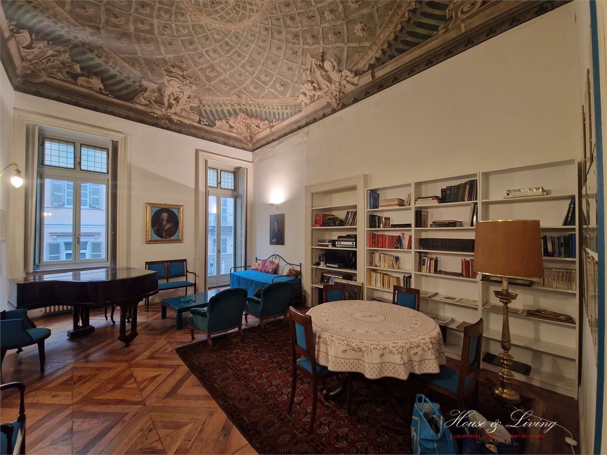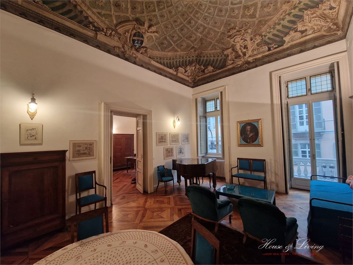 In stabile di pregio proponiamo al piano nobile appartamento di elevato pregio composto da ingresso, angolo cottura / cucinotto, ampia sala con soffitto affrescati, ampia camera notte con angolo office ed armadiature, piccolo corridoio che porta a cabina armadi e bagno con doccia. L'appartamento č completamente arredato. Riscaldamento centralizzato con termo valvole. Un posto auto scoperto completa la proprietā.Vivere il fascino di un'appartamento di pregio nel centro storico di Torino, ricco di servizi, attivitā culturali e ricreative. Ulteriori informazioni su richiesta.