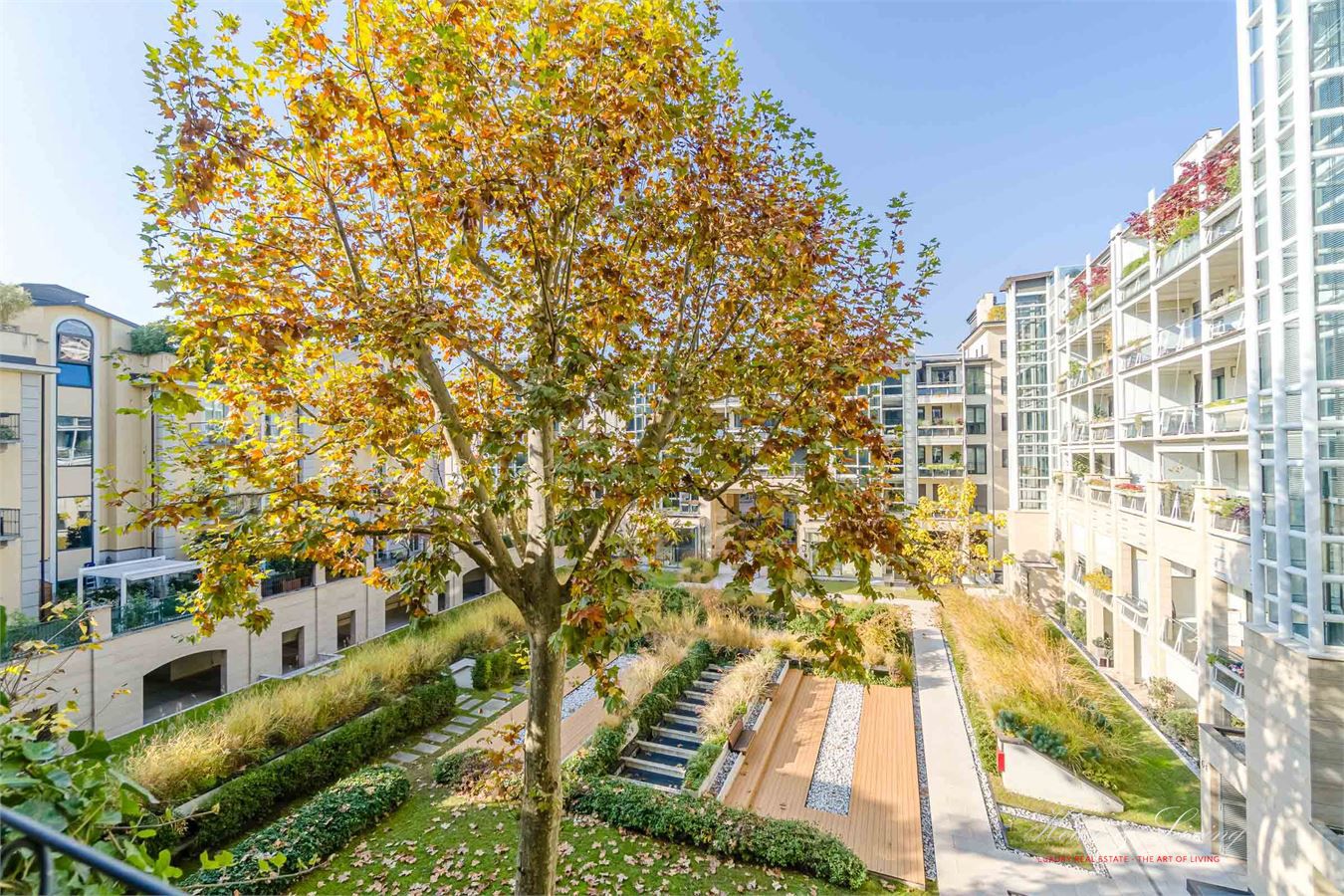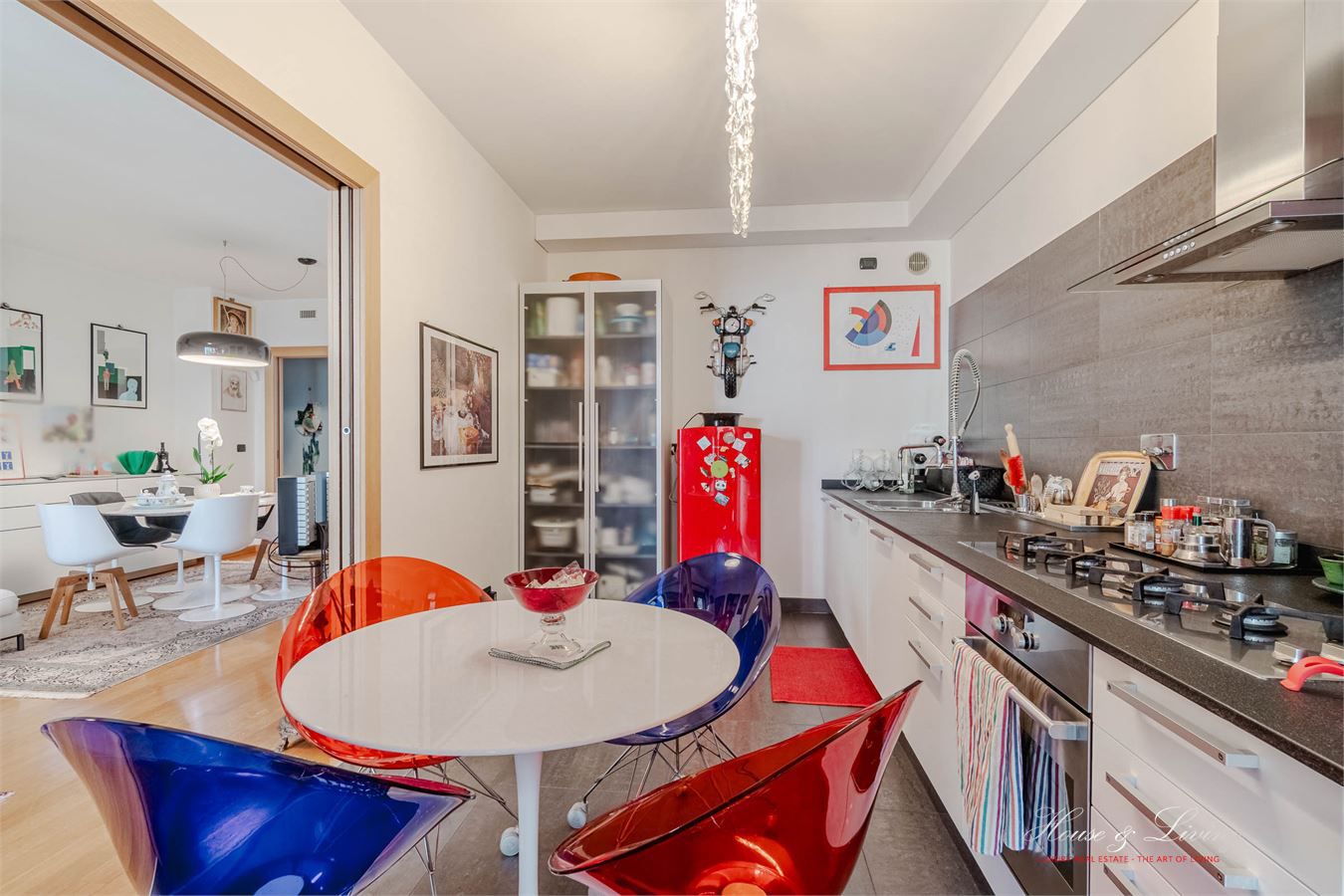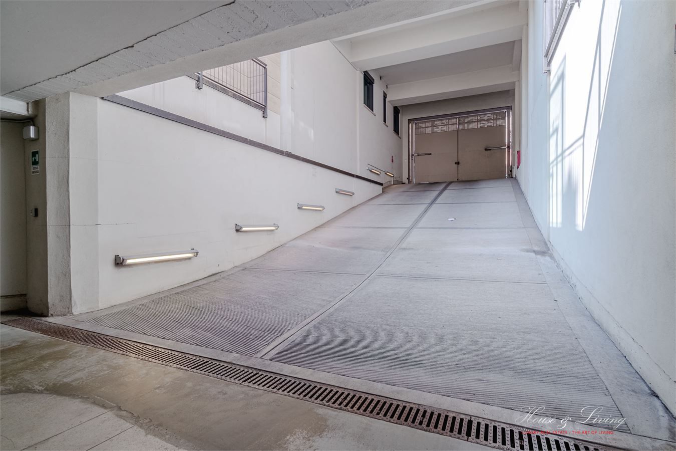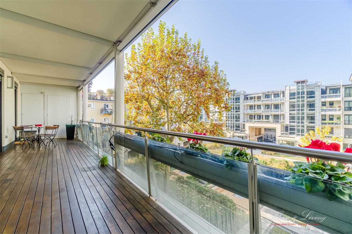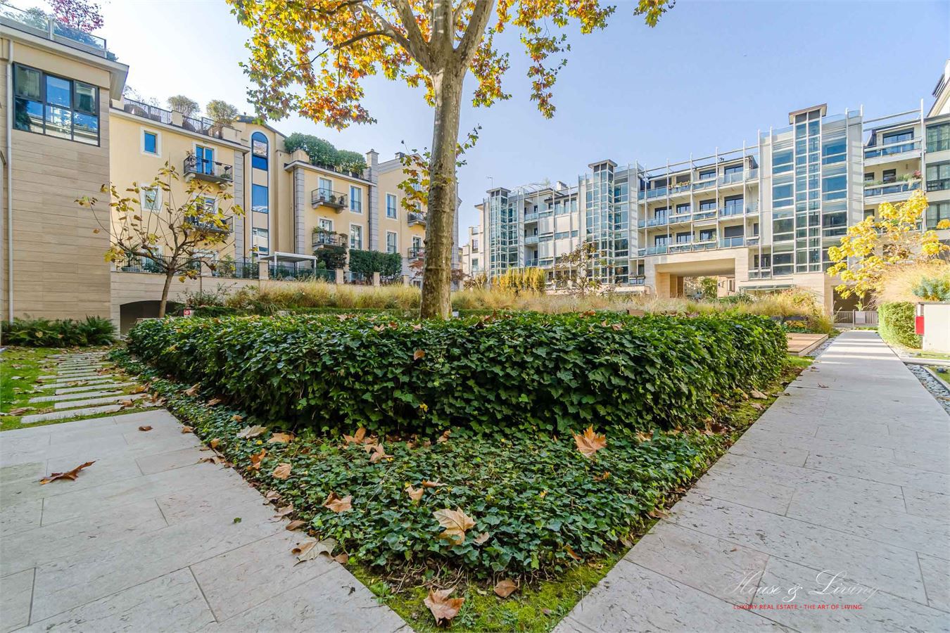 Dal salone, dalla cucina e dalla camera padronale si accede ad un terrazzo di circa 30 mq. con vista sulla corte interna/giardino condominiale, un ampio spazio verde perfettamente curato con fontane annesse (spazio in cui è consentito il gioco dei bambini).