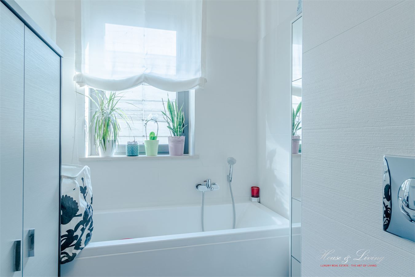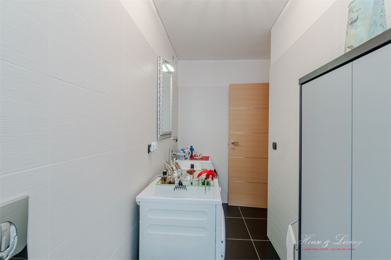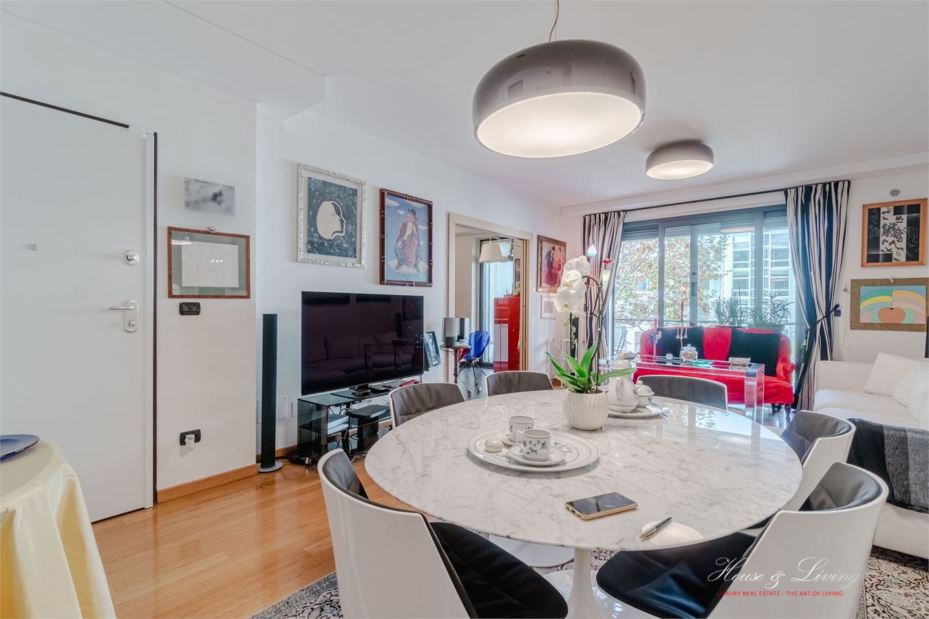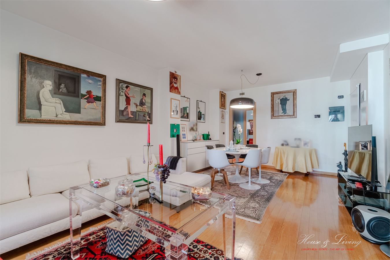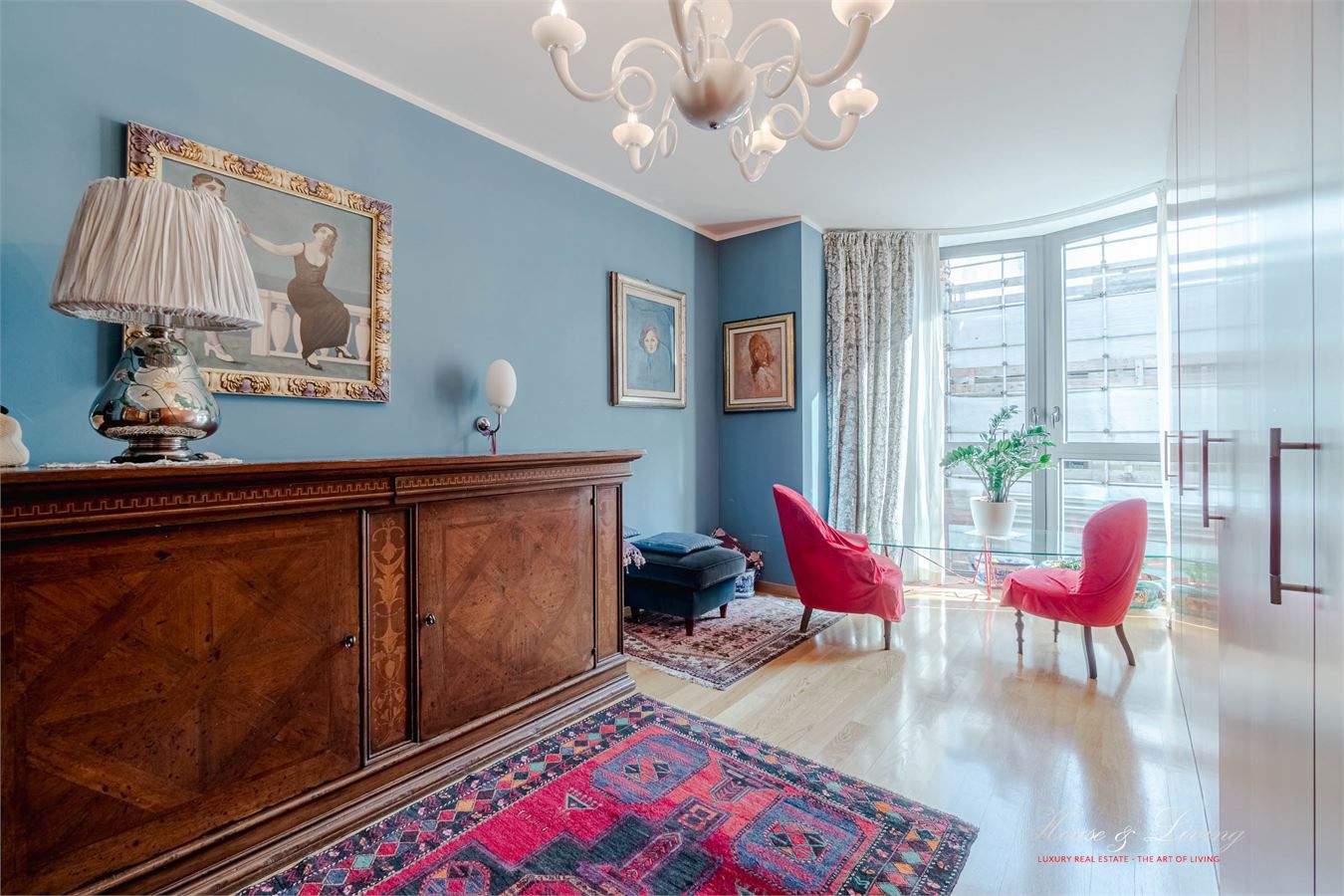 Dal salone, dalla cucina e dalla camera padronale si accede ad un terrazzo di circa 30 mq. con vista sulla corte interna/giardino condominiale, un ampio spazio verde perfettamente curato con fontane annesse (spazio in cui è consentito il gioco dei bambini).