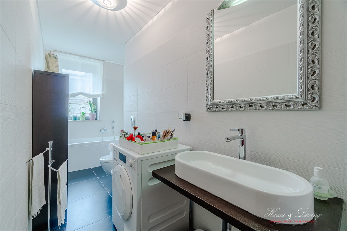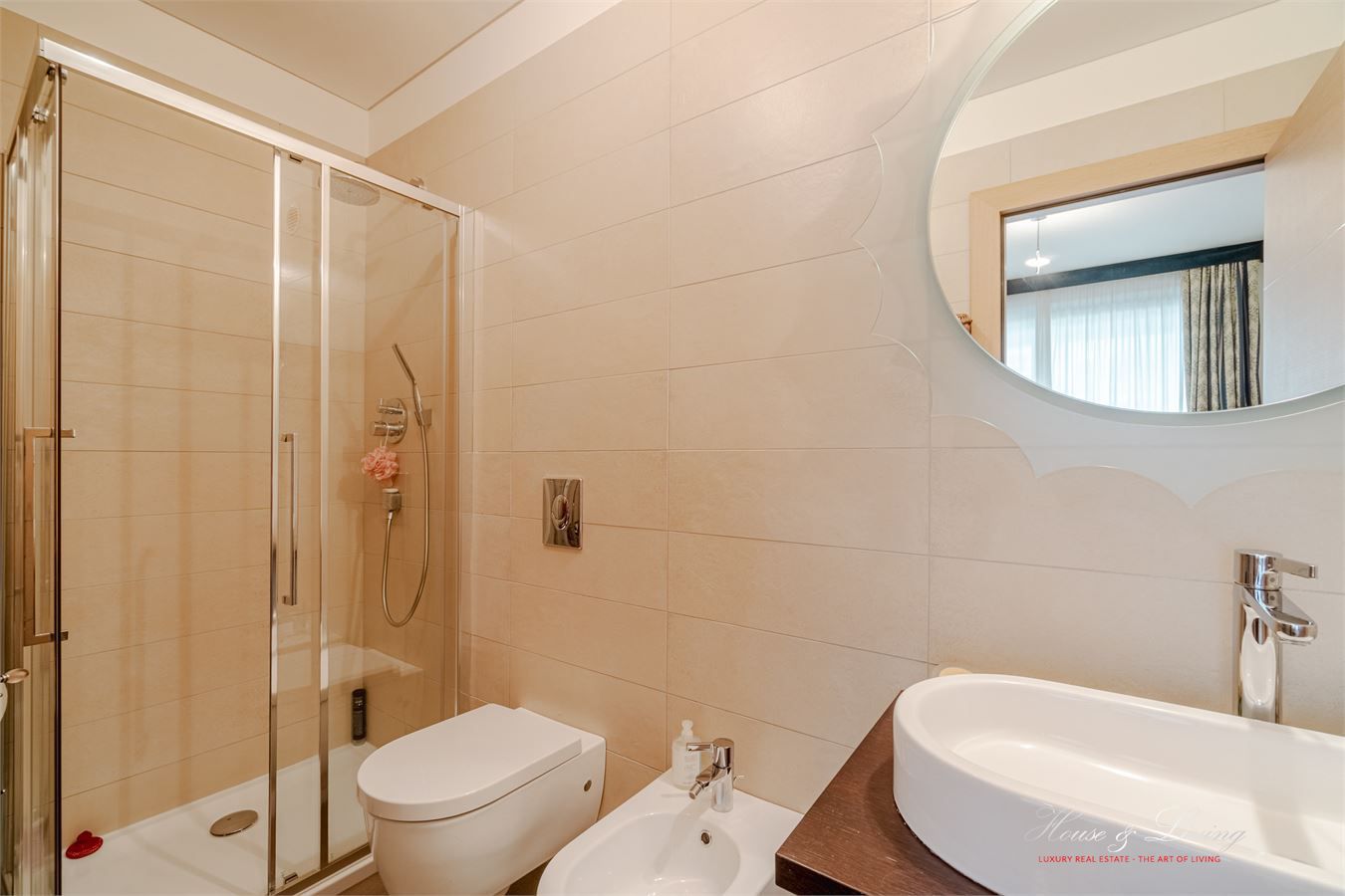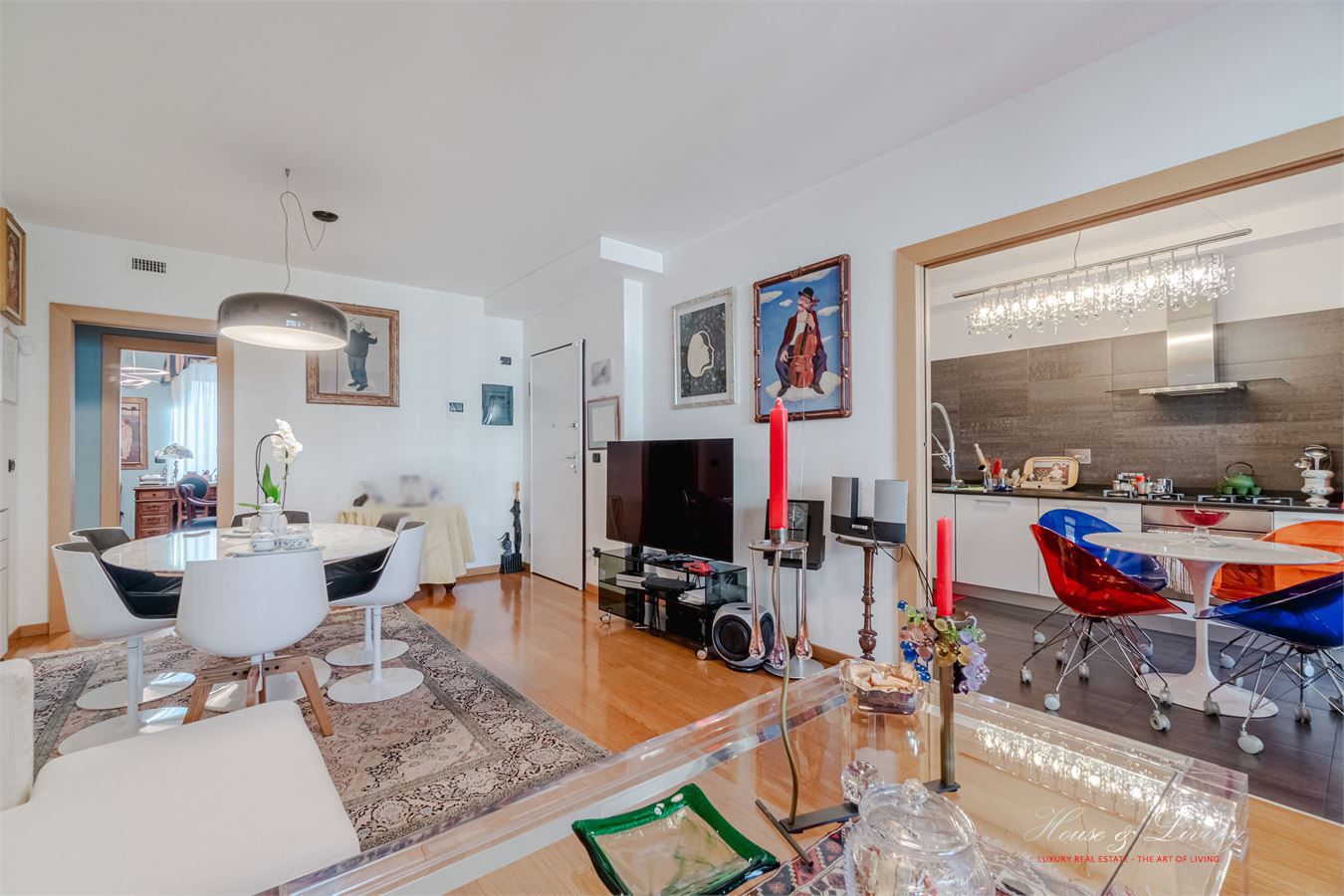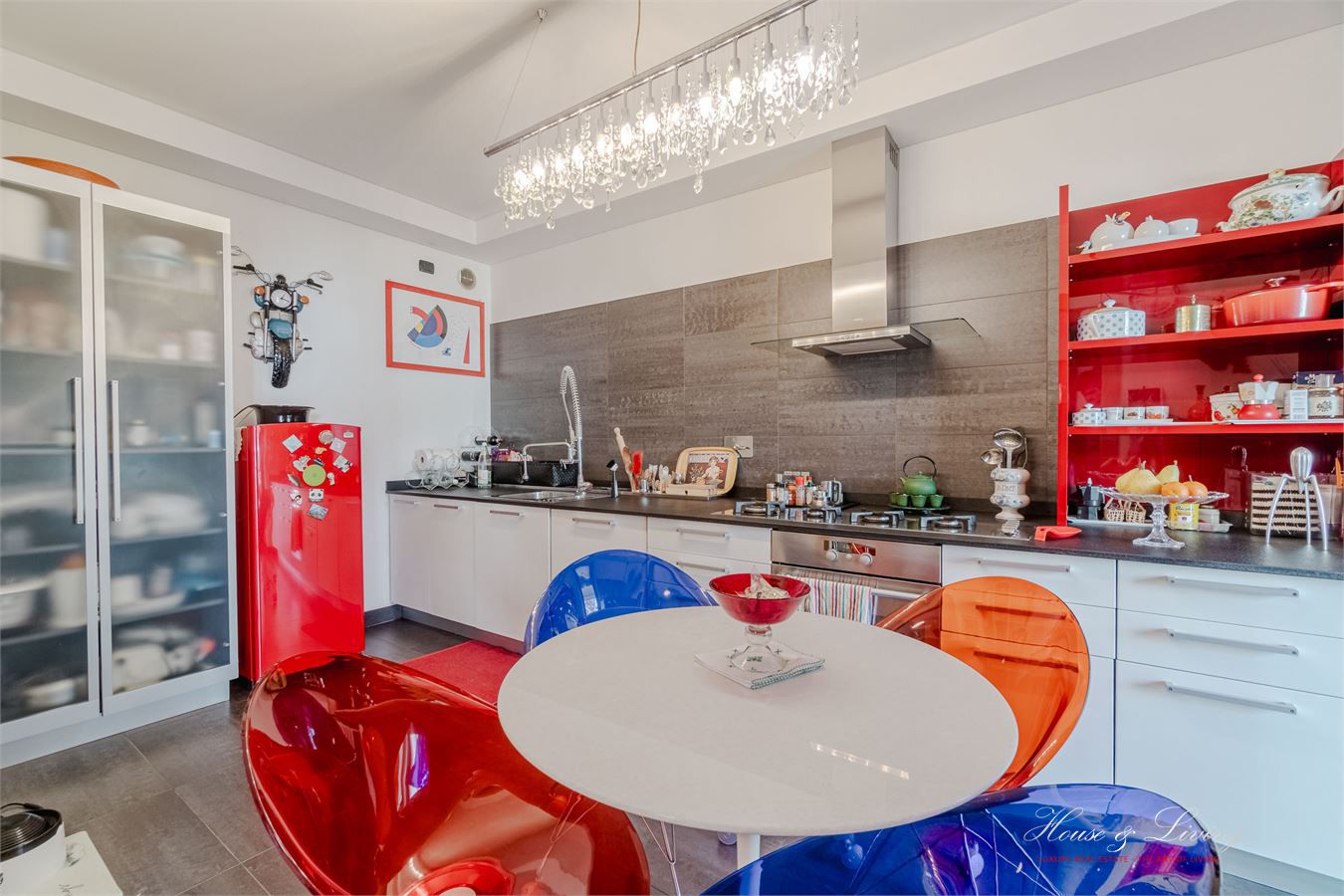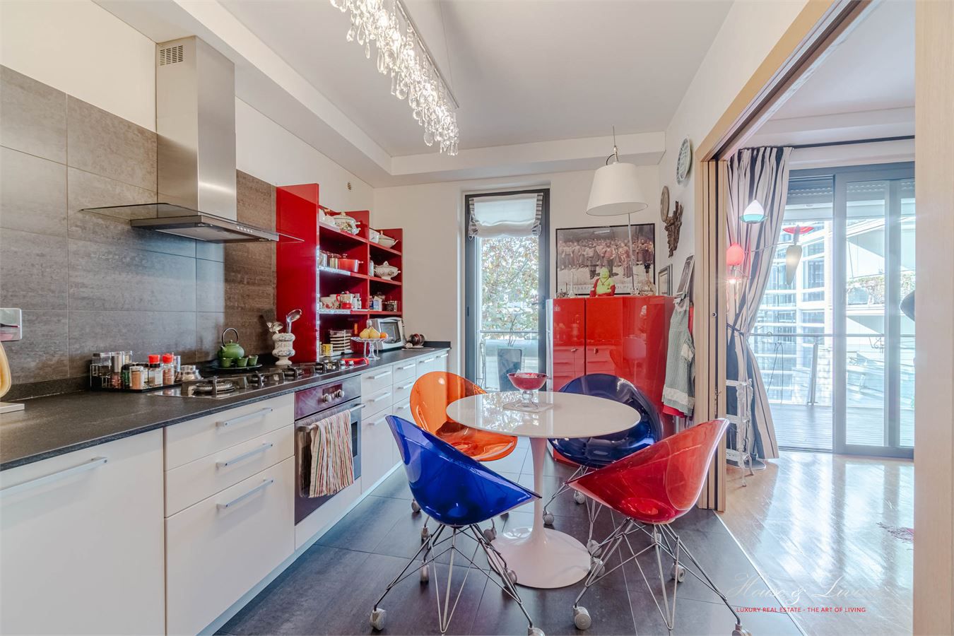 Dal salone, dalla cucina e dalla camera padronale si accede ad un terrazzo di circa 30 mq. con vista sulla corte interna/giardino condominiale, un ampio spazio verde perfettamente curato con fontane annesse (spazio in cui è consentito il gioco dei bambini).