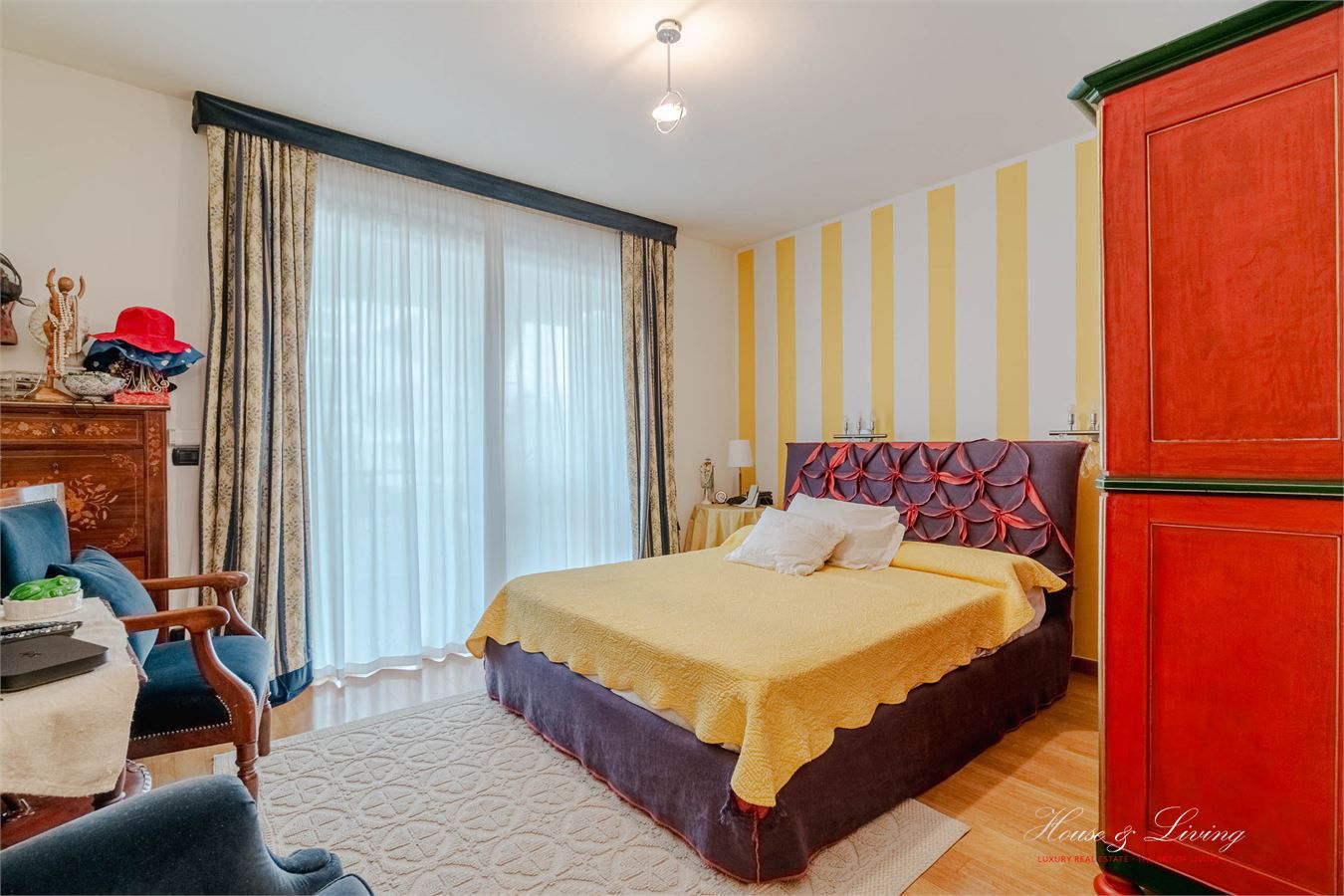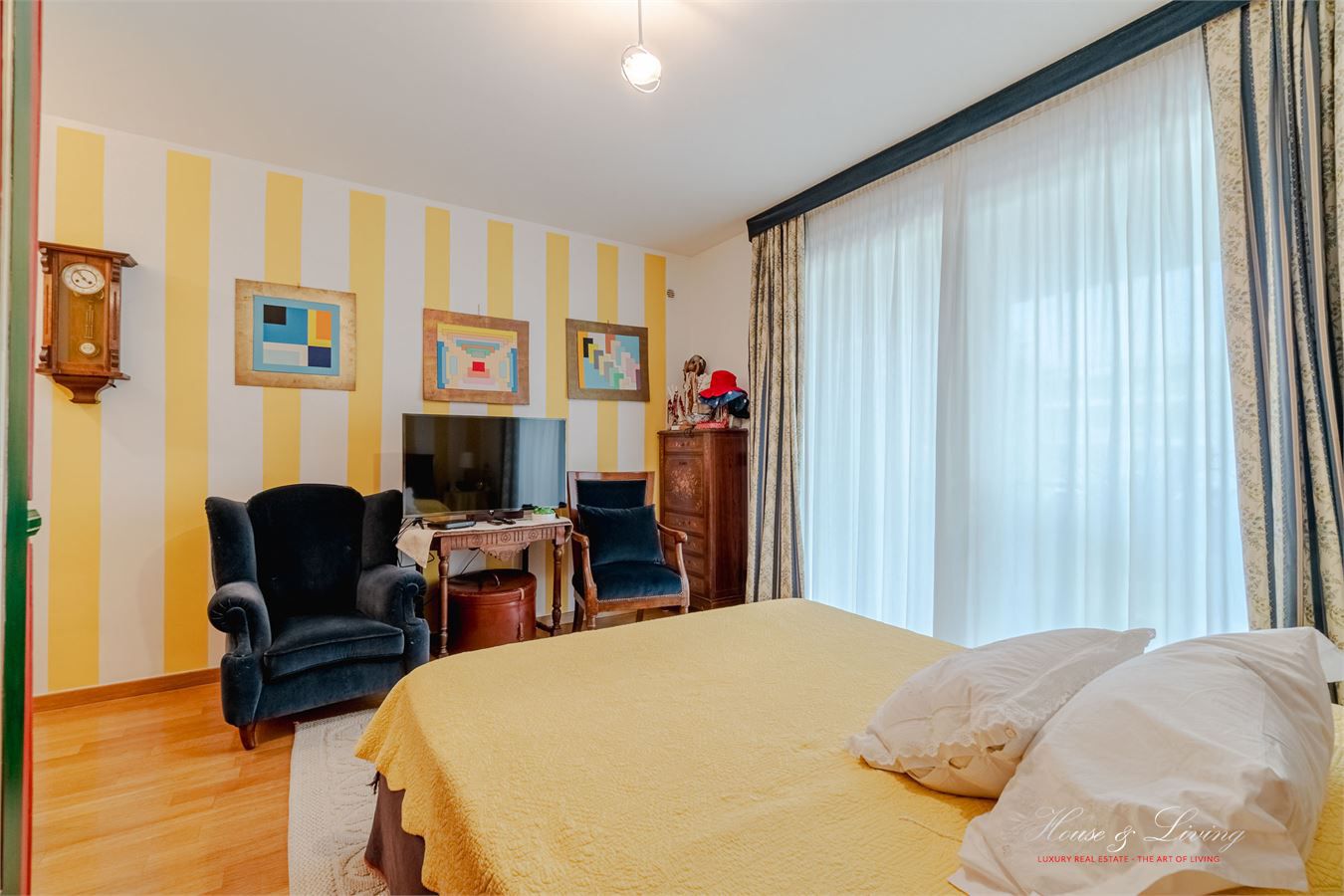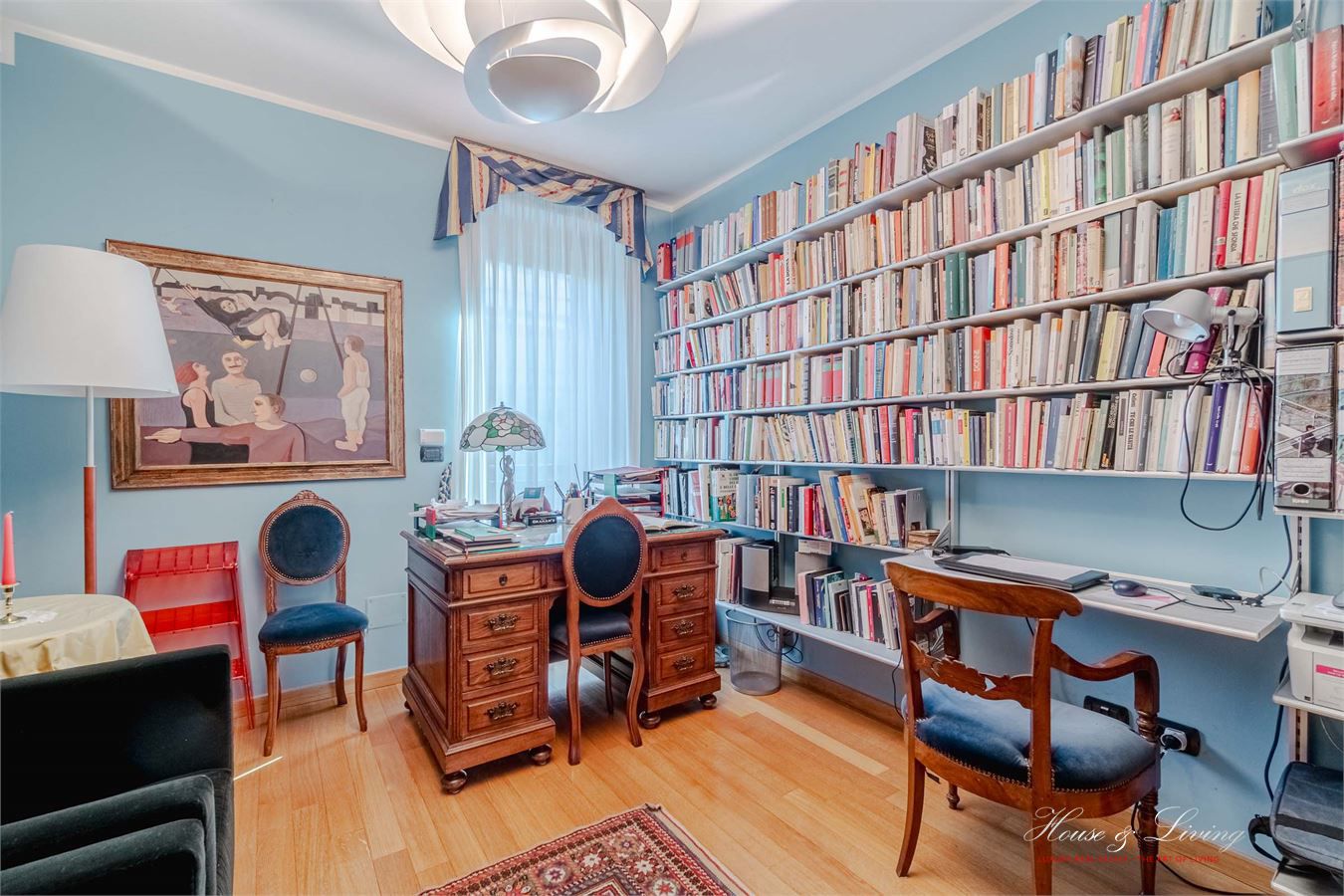 L'appartamento dispone inoltre di tre camere da letto (di cui una con bow window con vista su Via Moncalvo) e tre bagni.