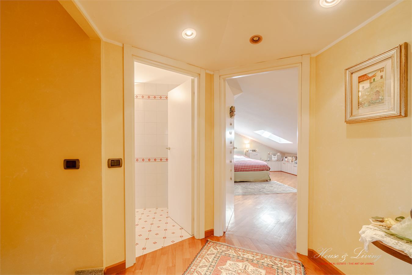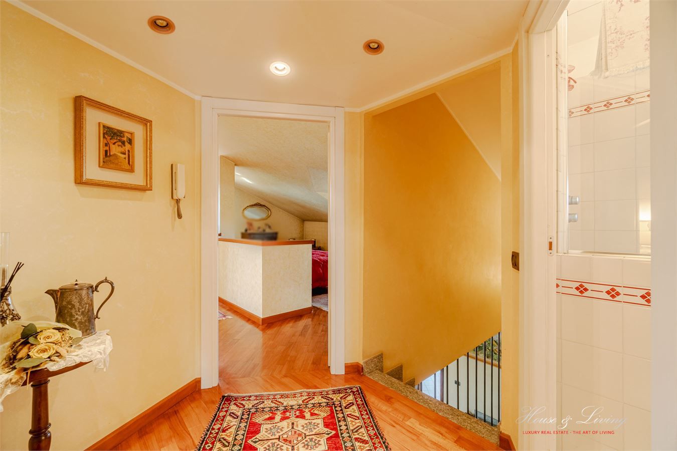 - il primo livello mansardato collegato da comoda scala interna si compone di un'ampia camera matrimoniale doppia (eventualmente con la possibilità da quest'ultima due camere), una seconda camera; entrambe le camere sono provviste di armadi a muro su misura; completano questo piano un bagno ed un ripostiglio.